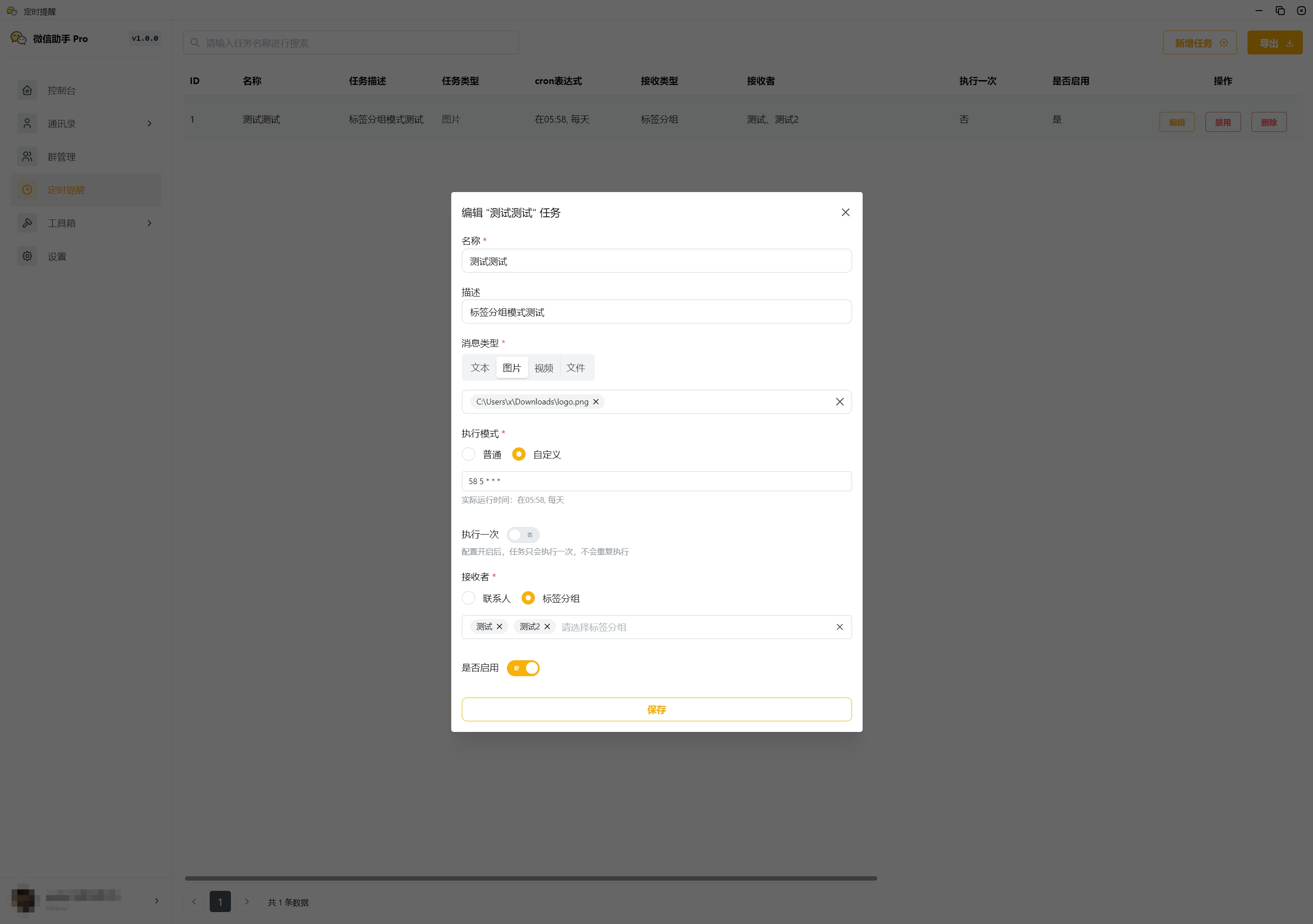 功能介绍定时提醒本页总览定时提醒 定时提醒功能可以帮助您更好地安排工作和生活,及时提醒您在指定时间完成任务。 列表页 定时提醒列表,支持查看任务类型、任务名称、执行时间、上次运行时间、下次运行时间、任务参数、任务状态等信息。 新增定时提醒 新增定时提醒,支持设置任务类型、任务名称、执行时间、任务参数等信息。 删除定时提醒