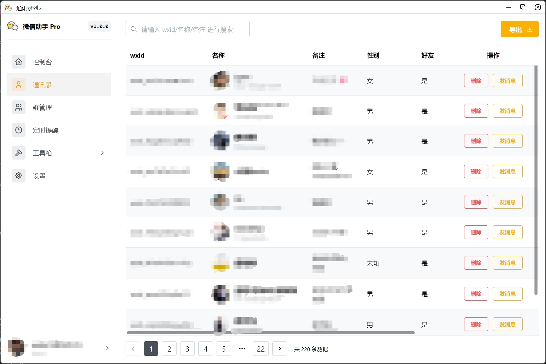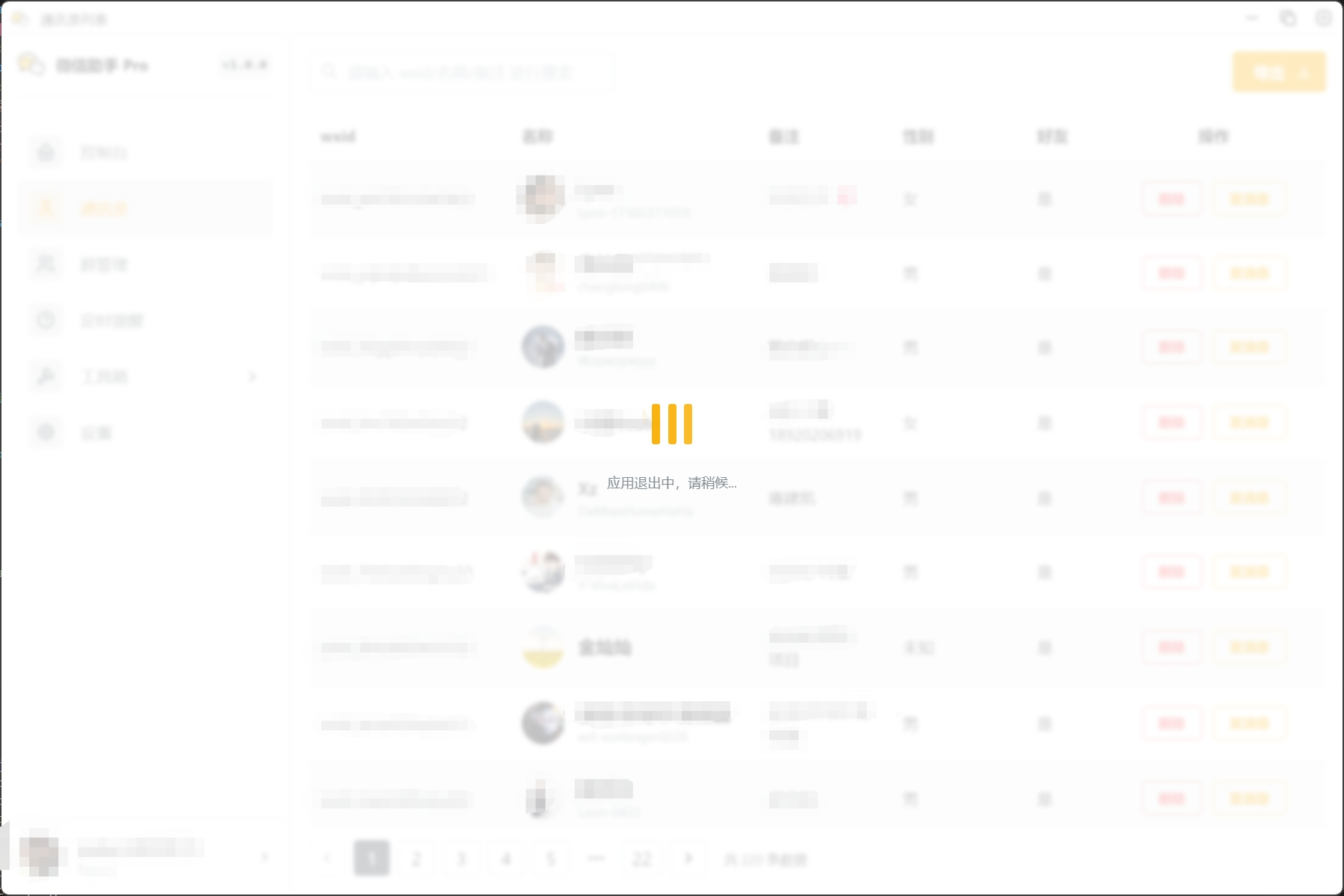 等待数据加载完成,即可进入软件运行主界面,体验完整的 微信助手 Pro 功能。